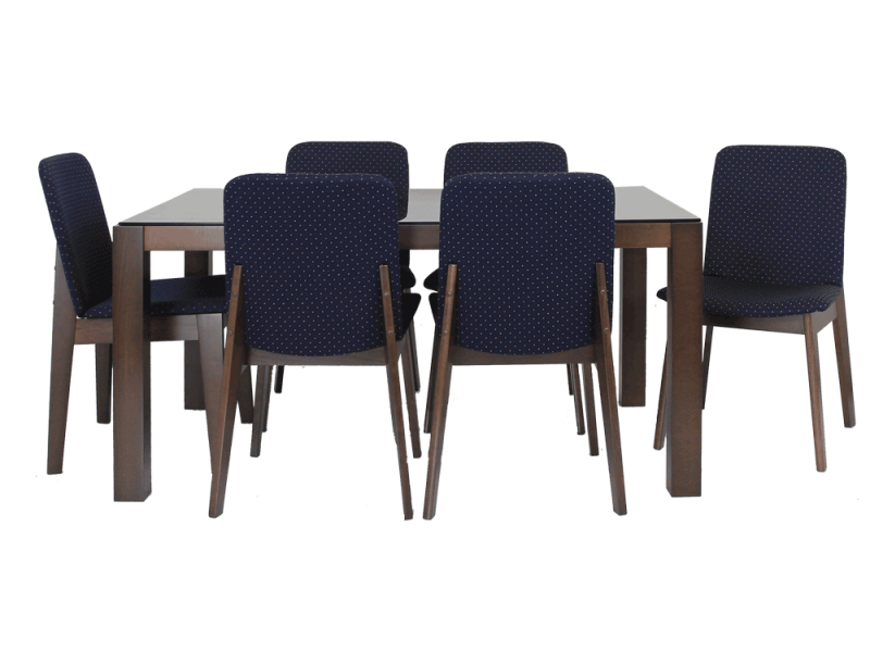 BEST DEAL MICHAEL 150 DINING PACKAGE, BLACK 1 TABLE + 6 BLUE CHAIRS